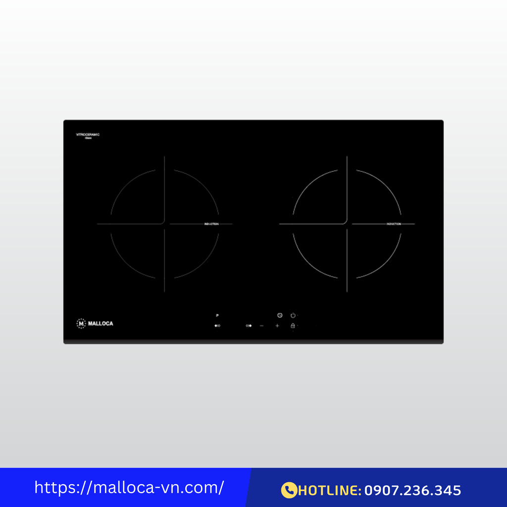 - Bếp từ 2 vùng nấu lắp đặt âm