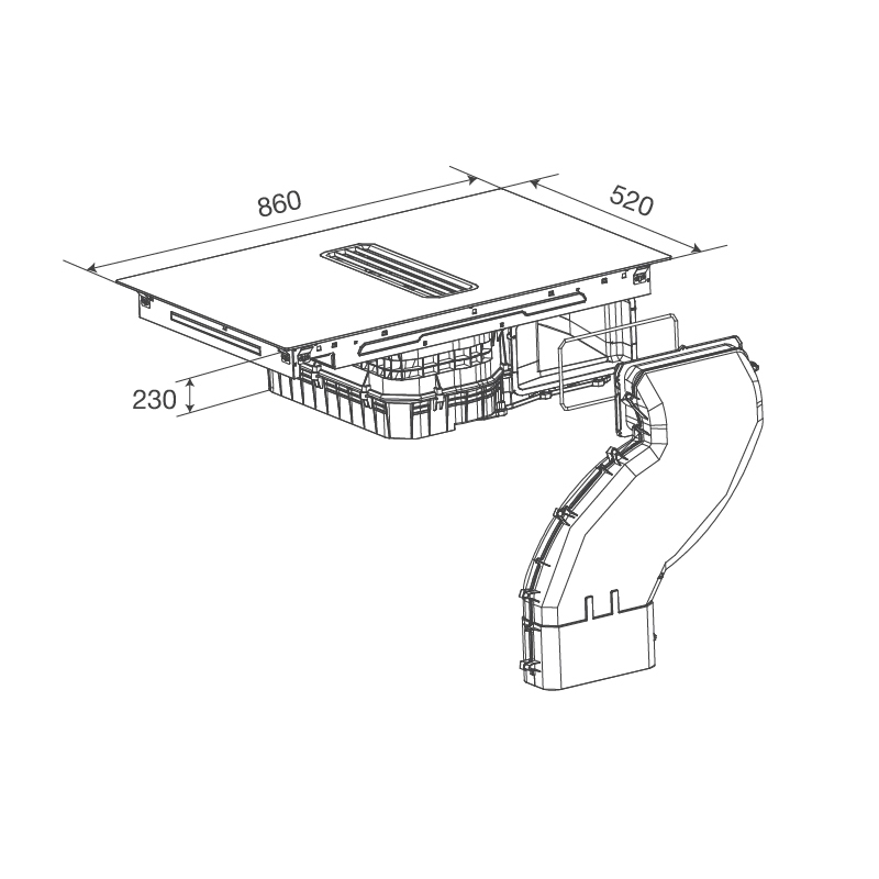 - Kích thước mặt kính: W860 x D520 x H230 mm