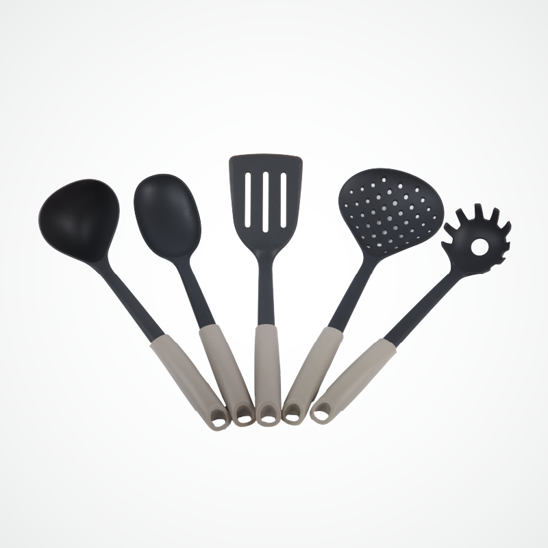 Bao gồm: 01 muỗng, 01 xẻng lật xúc thức ăn, 01 dụng cụ gắp mì, 01 muỗng rây lọc thức ăn, 01 vá múc canh và 01 trục xoay gắn bộ đồ dùng.