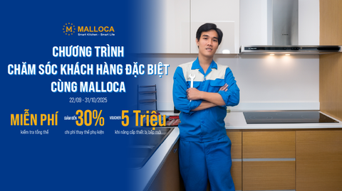 Ở Malloca, dịch vụ hậu mãi không chỉ là hỗ trợ kỹ thuật, mà còn là lời cam kết đồng hành dài lâu. Chương trình Chăm Sóc Khách Hàng Đặc Biệt 2025 được triển khai nhằm nâng cao trải nghiệm sử dụng, giảm thiểu rủi ro, tối ưu hiệu quả sử dụng các thiết bị bếp. - Thời gian áp dụng chương trình từ ngày 22/09/2025 đến 31/10/2025. - Đối tượng: Khách hàng ở thành phố Hồ Chí Minh (theo địa giới hành chính mới), đã sử dụng sản phẩm Malloca từ 5 năm trở lên. Nội dung chi tiết chương trình: - Tổng kiểm tra an toàn kỹ thuật, an toàn điện, bảo trì động cơ, kiểm tra tuổi thọ… cho các thiết bị nhà bếp. - Tất cả các thiết bị sau khi kiểm tra và bảo trì kỹ thuật sẽ được bảo dưỡng thẩm mỹ bằng các dung dịch chuyên dùng được Malloca sử dụng cho các thiết bị nhà bếp để diệt khuẩn, làm sạch các vết bẩn lâu ngày và sáng bóng sản phẩm. - Tư vấn thời hạn sử dụng cần thiết để thay thế kịp thời các chi tiết có tuổi thọ nhất định cho thiết bị. - Hỗ trợ thực hiện vệ sinh lần đầu và hướng dẫn khách hàng tự làm vệ sinh thiết bị để tăng tuổi thọ cho thiết bị. Ưu đãi khi tham gia chương trình: - Kiểm tra tổng thể thiết bị hoàn toàn miễn phí 100%. - Giảm giá chi phí thay thế phụ kiện lên đến 30%. - Tặng ngay voucher 5 triệu nếu khách hàng có nhu cầu đổi bếp mới hoặc đổi sang dòng sản phẩm mới. Với tinh thần tận tâm hậu mãi – an tâm dài lâu, Malloca không ngừng nâng cao chất lượng dịch vụ, để mỗi trải nghiệm của khách hàng đều trọn vẹn hài lòng.